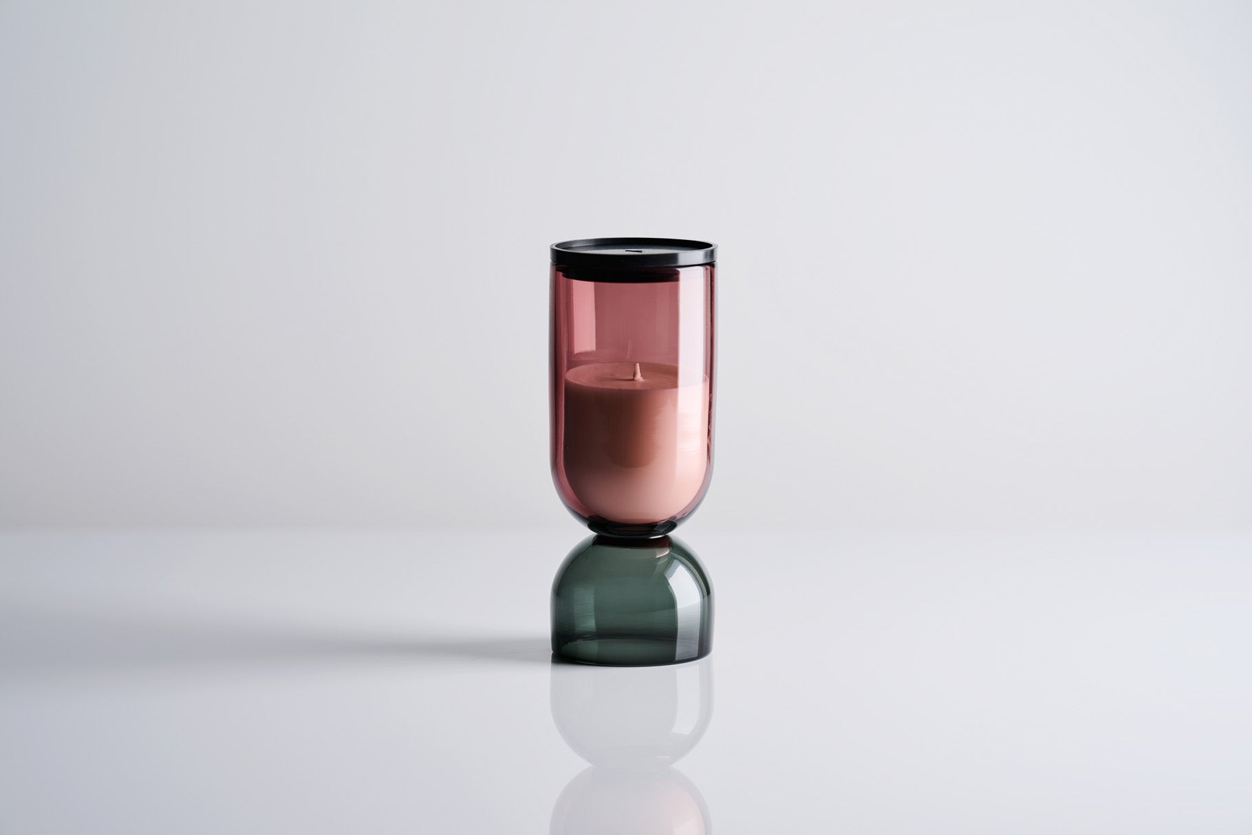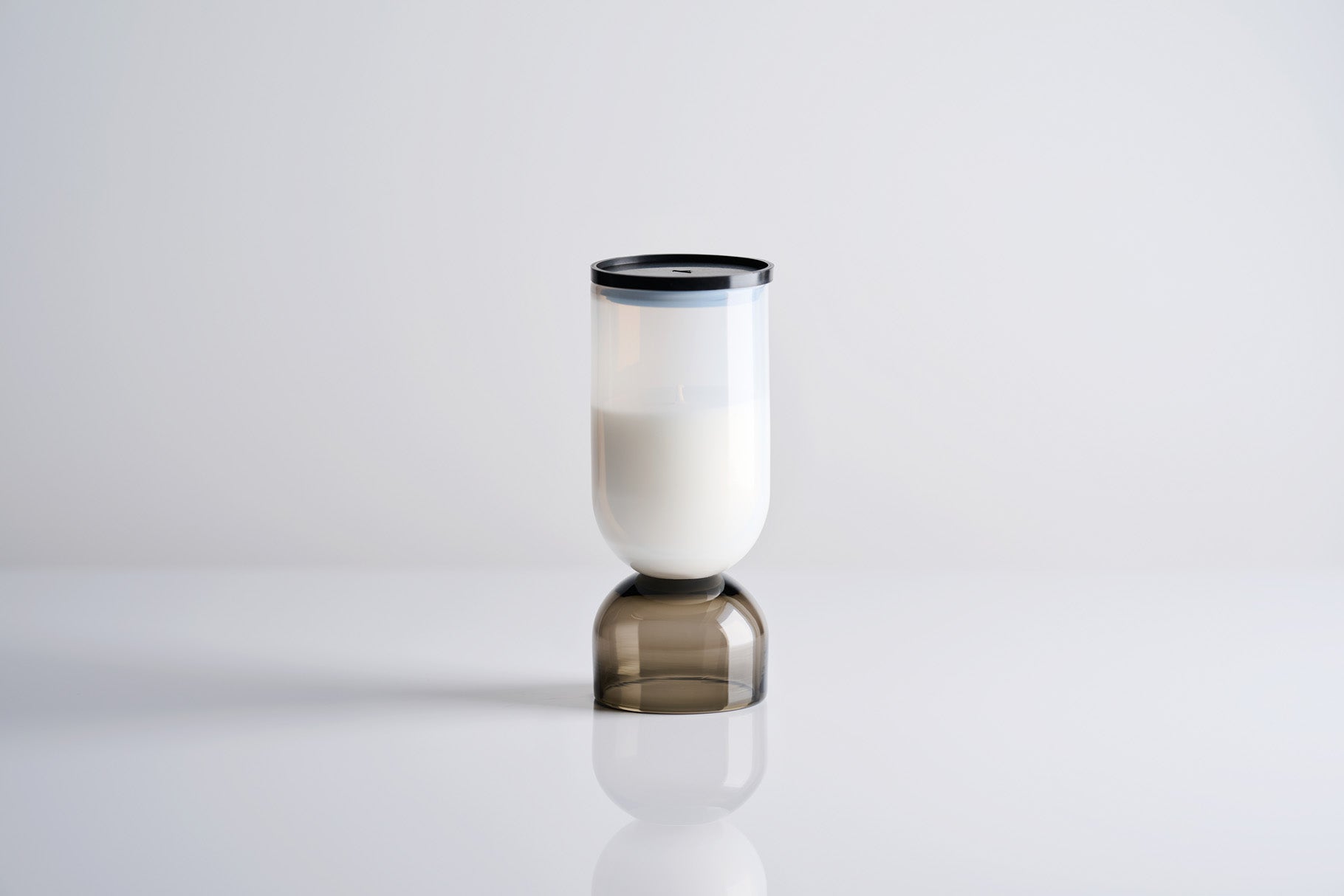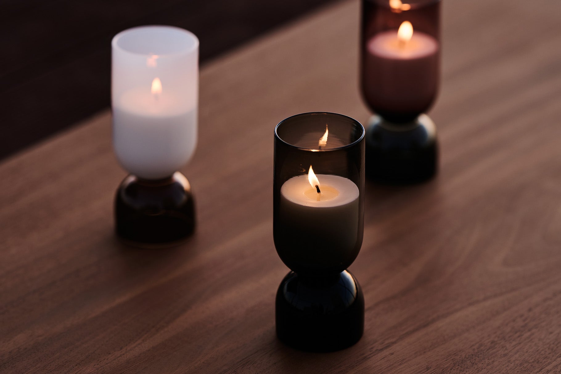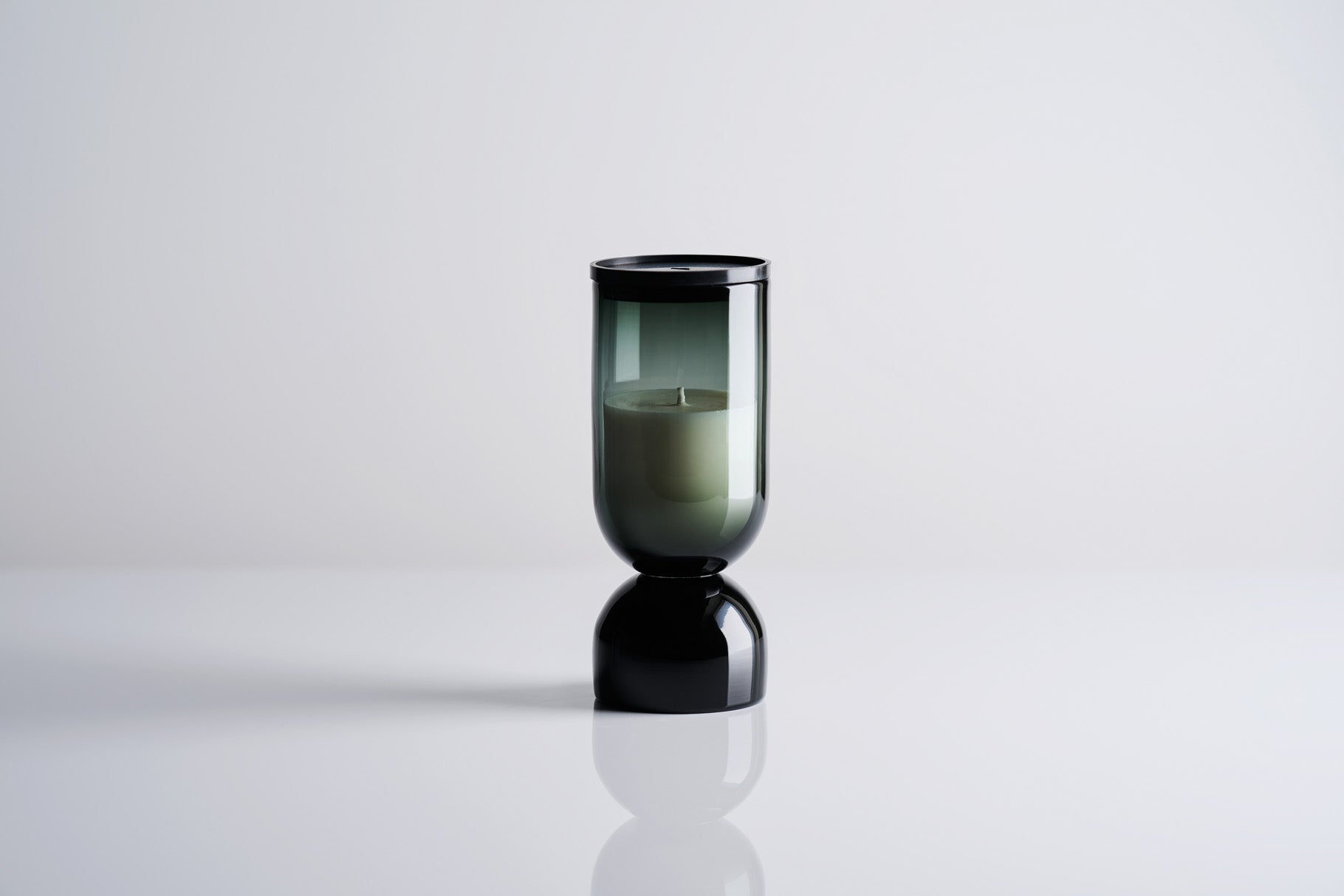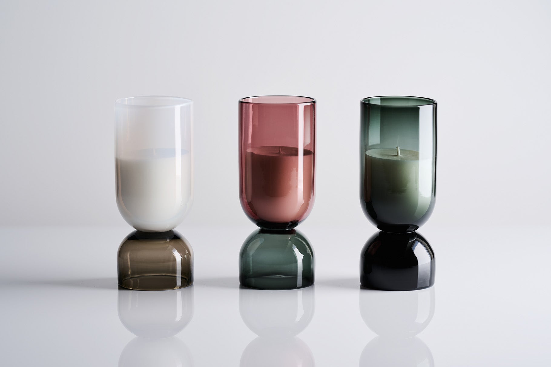 深さのあるホルダーは炎の揺らぎを生み出す構造となり、ガラスを透過した光はより柔らかく、ガラス面に映り込む光が重なり合うことで幻想的な情景を生み出します。greyとpurpleは炎のゆらめきを感じられる色味、opalは眩しさを抑えつつ光をやわらかく拡散させます。専用のキャンドルリフィルとあわせてご使用ください。