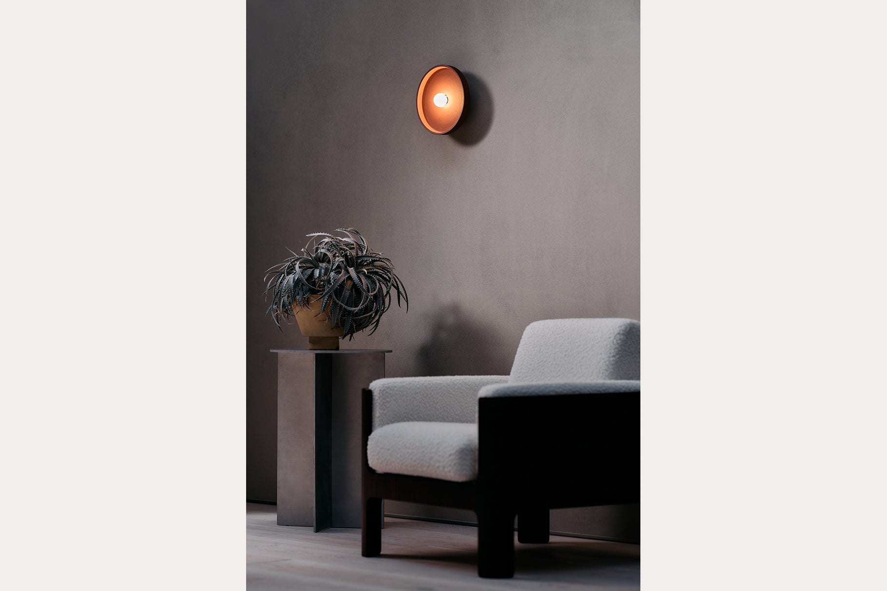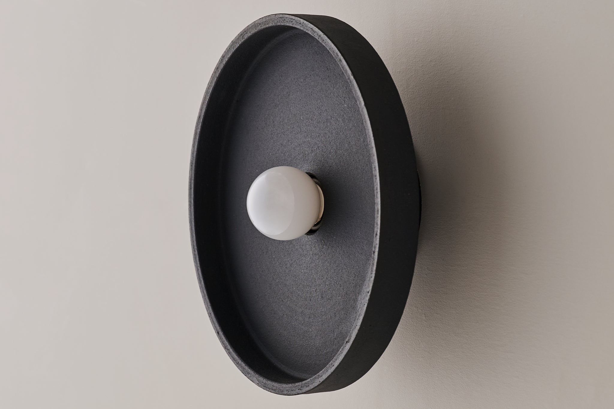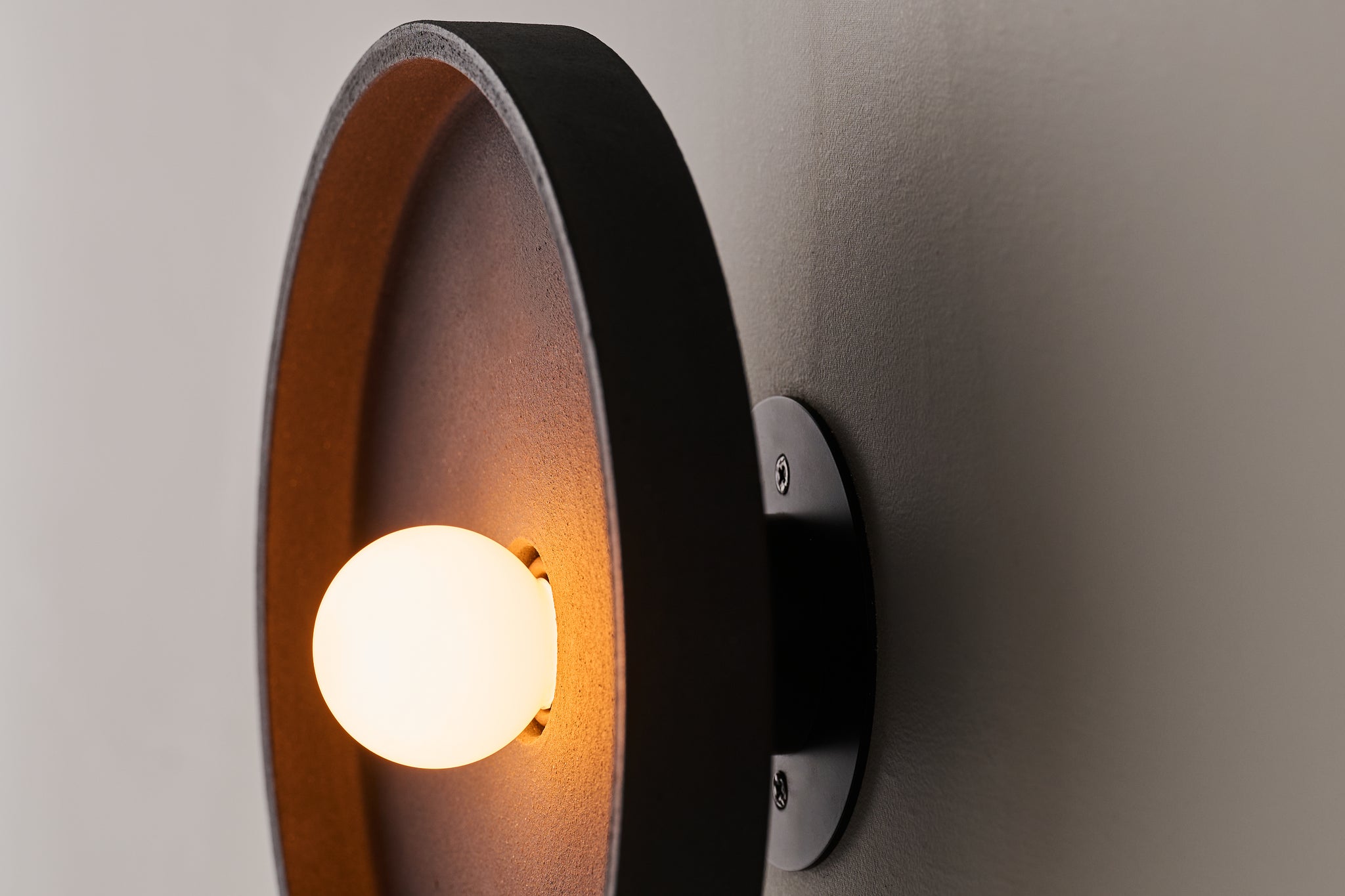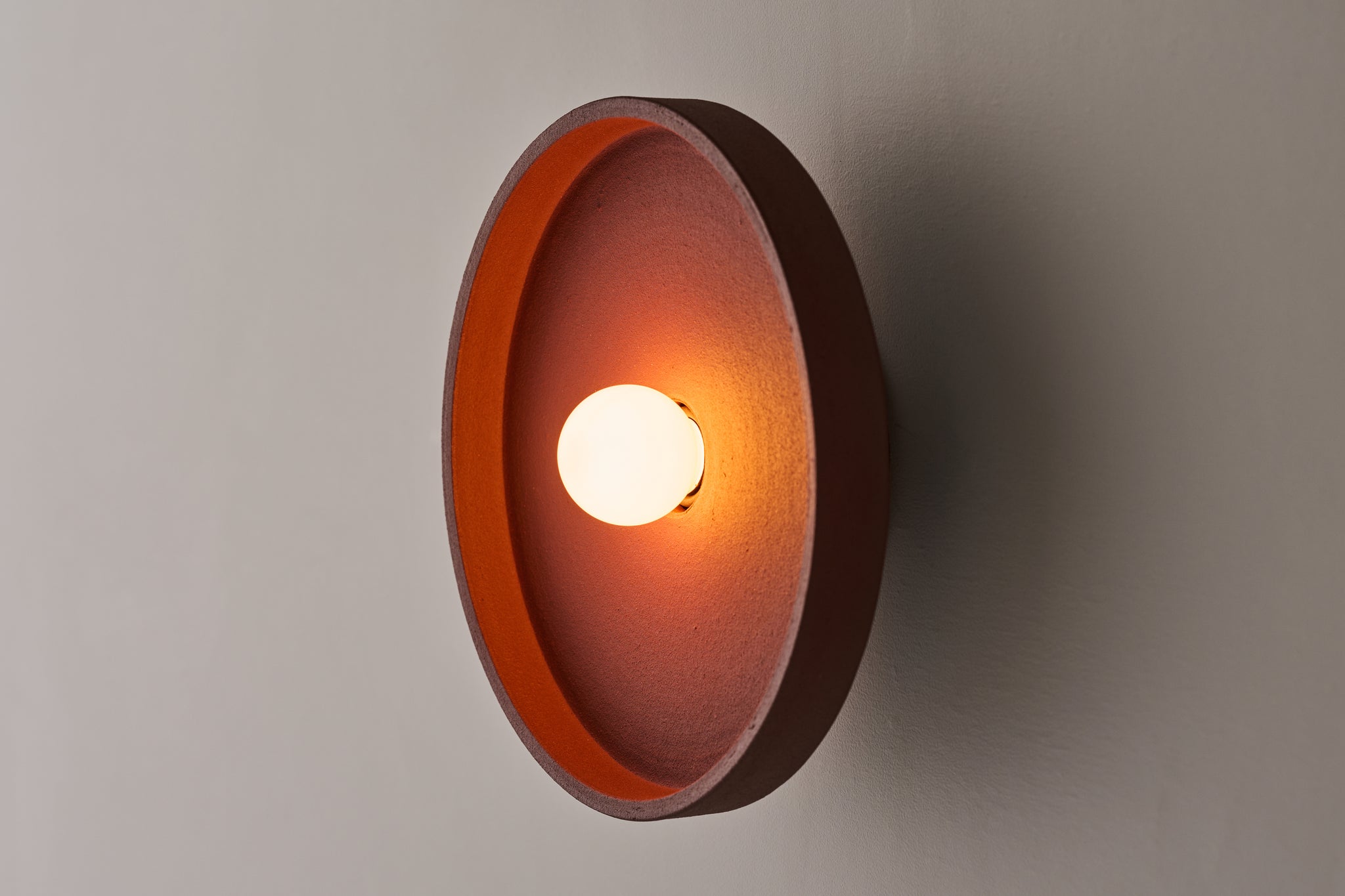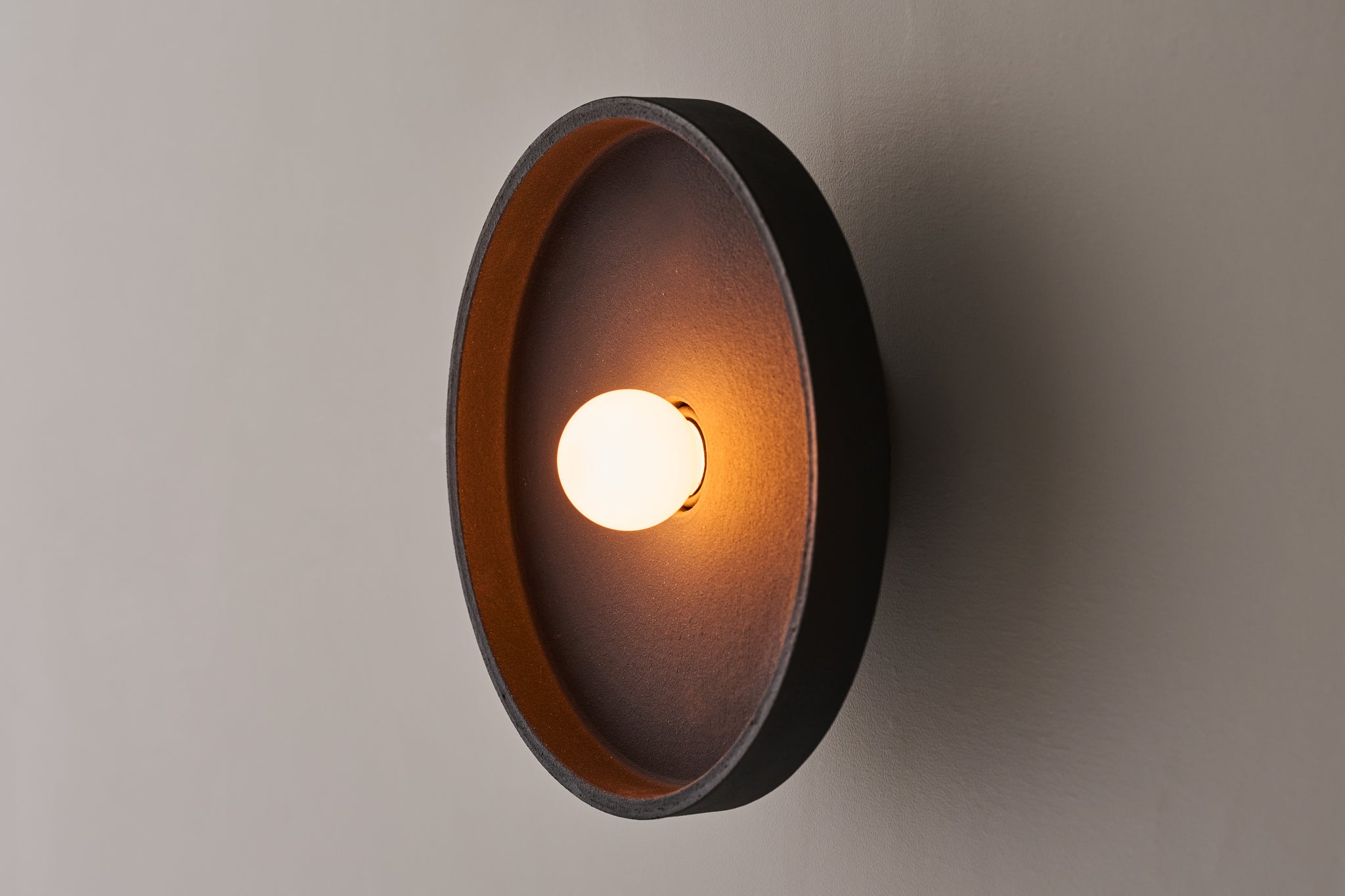 瓦と同じ土を使ったシェードは、マットな質感で土のテクスチャーを感じさせます。シンプルなプレート状のシェードは、光を柔らかく受け止めます。