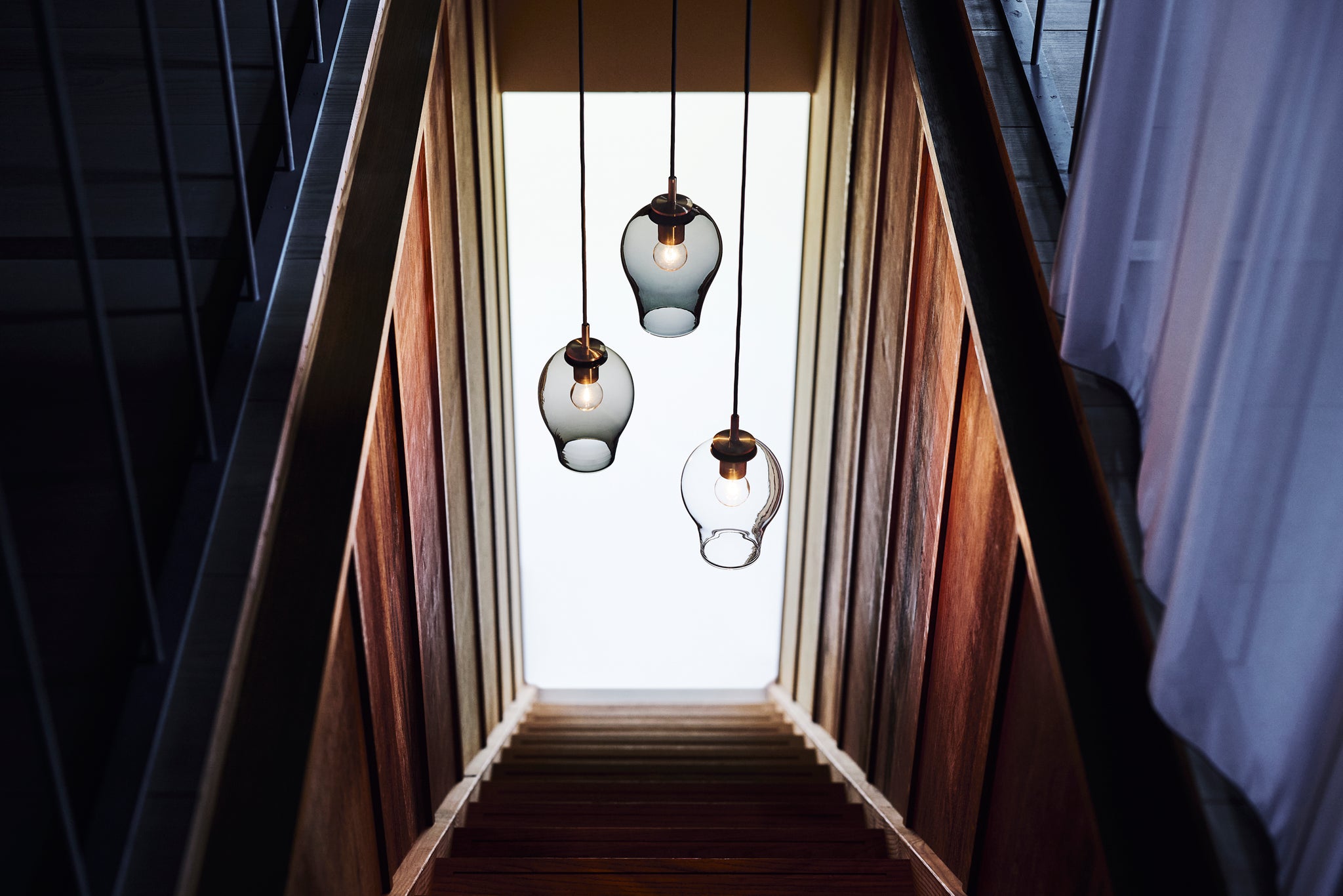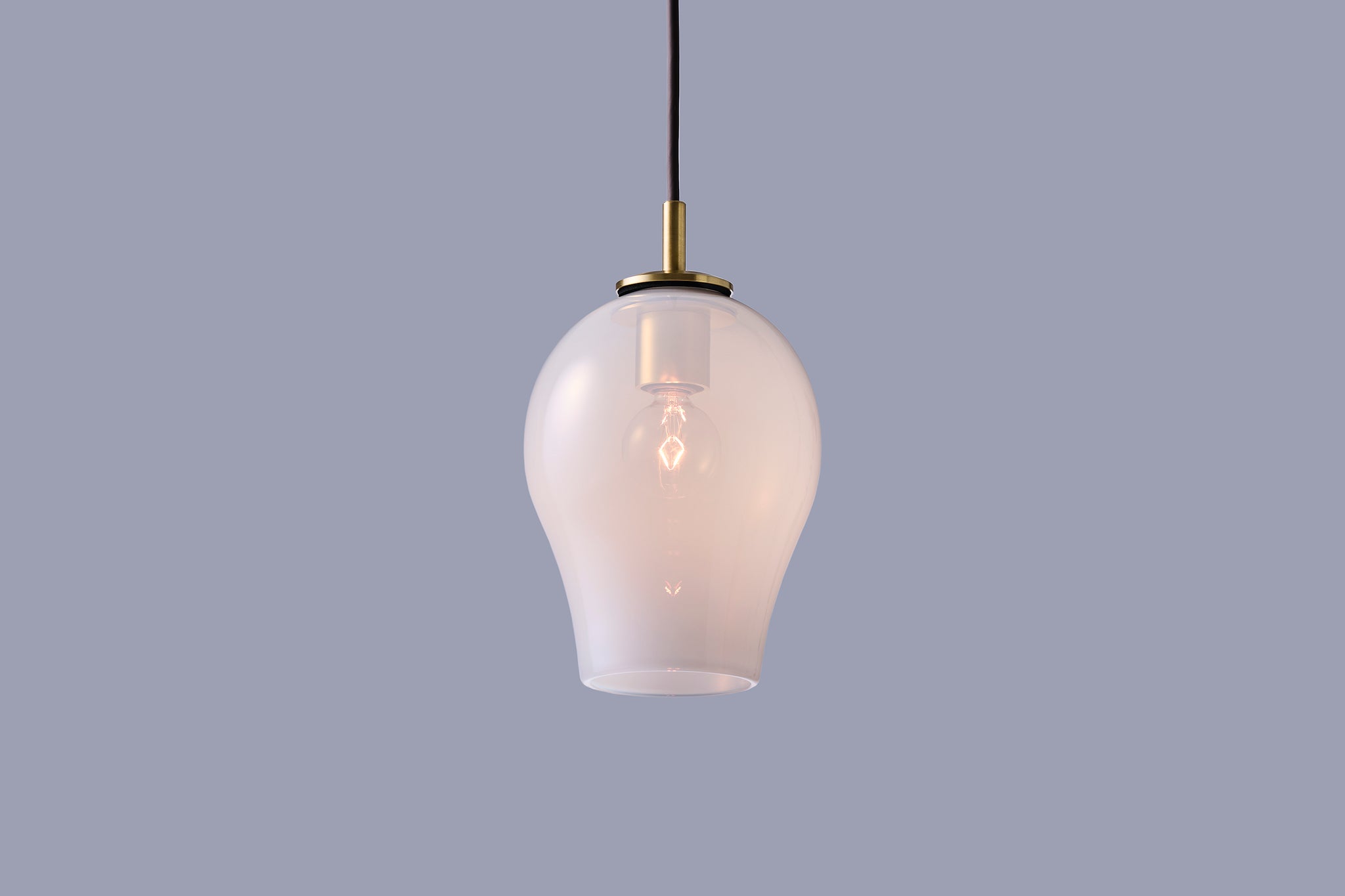 Lily(リリー)はマウスブローで製作したガラスシェードのペンダントライトです。約1300度の溶解炉から溶けたガラスをパイプに巻き取り、息を吹き込み成形します。一点ずつ丁寧につくられたガラスシェードは、マウスブローでしか表現のできない味わいのあるものとなっています。鈴蘭(Lily of the valley)のような形状が商品名の由来です。
